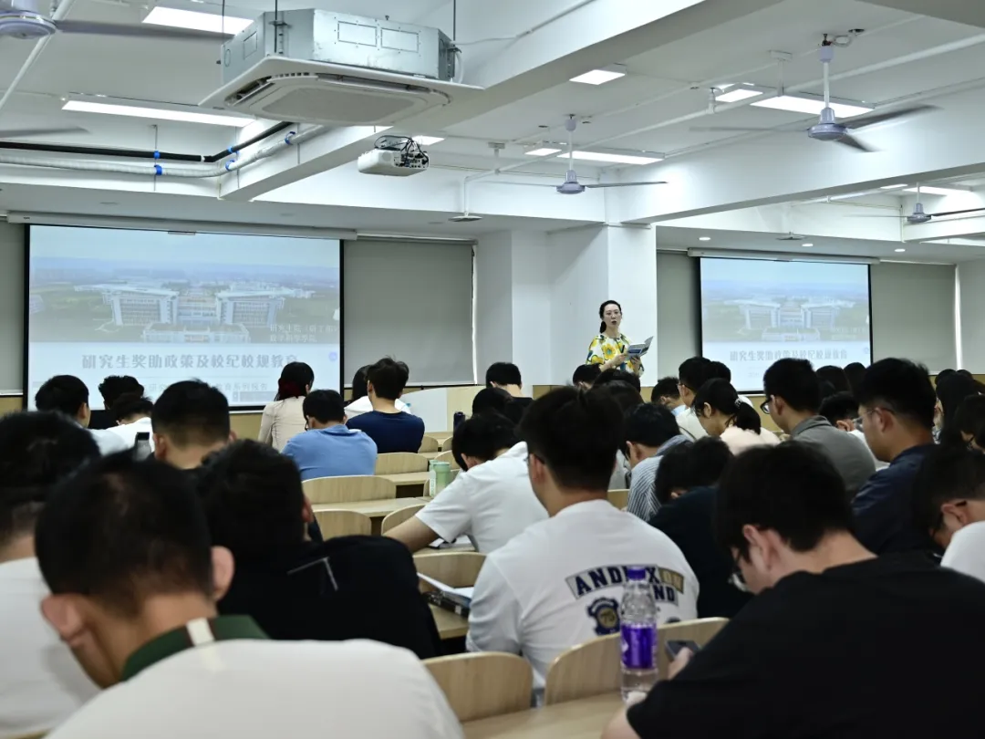于仙林湖公寓区组织开展“研究生奖助政策”与“校纪校规教育”为主题的始业教育专题讲座。本次讲座由研究生辅导员李婉君主讲,为新生全面介绍奖助政策、筑牢底线思维、指导成长路径。