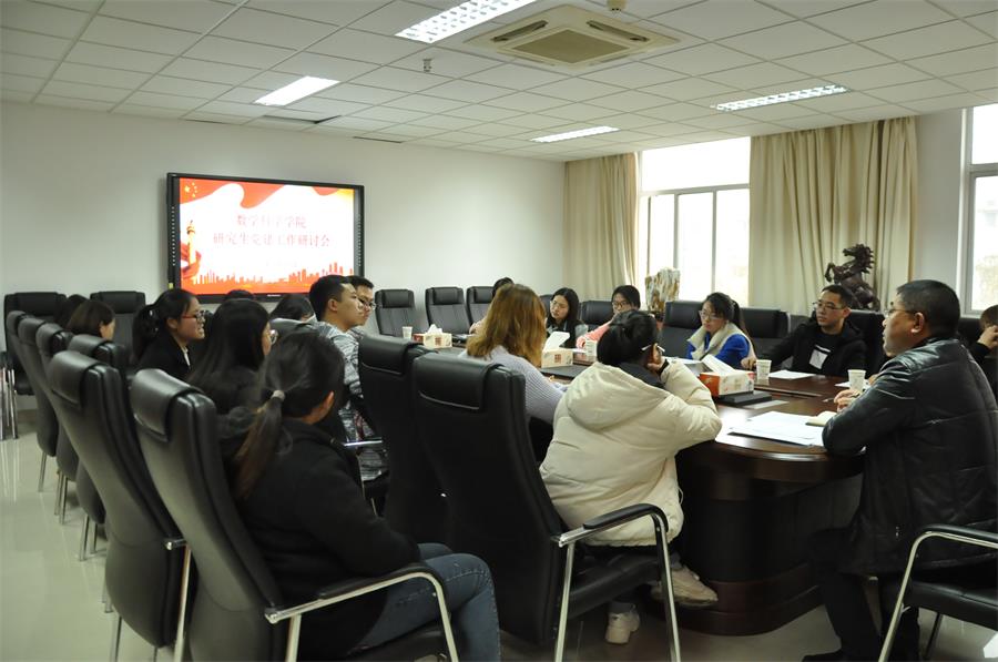 为进一步加强*女王调教-女王调教视频-女王 调教小说研究生党建与思想教育工作,实现研究生党建示范创建与质量创优,2019年3月27日下午,行健楼544会议室,数科院2019年研究生党建工作专题研讨会在这里如期召开。院党委副书记喻华杰、党建工作辅导员徐倩、各研究生党支部书记、支委共同参加了本次研讨会。