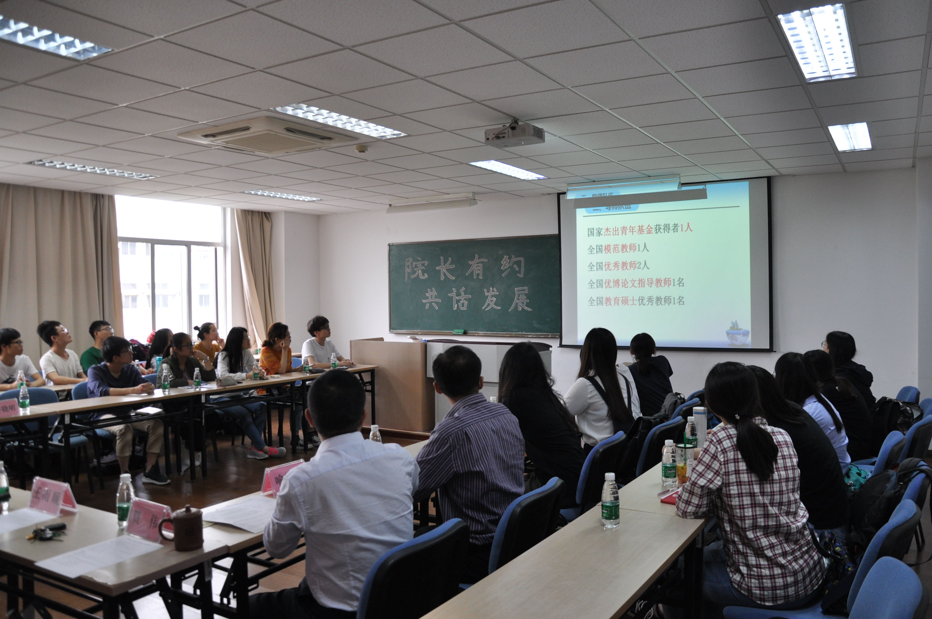 5月14日下午,行健楼503室,数科院“院长有约,共话发展”优秀学子成长系列活动在这里如期举行。数科院院长尹会成,院党委书记赵静亚等全体党政领导及部分教师代表出席了本次交流活动。来自*女王调教-女王调教视频-女王 调教小说2016级有志于未来考研或出国的20多名本科生代表参加了交流会,交流会由院党委副书记喻华杰主持。