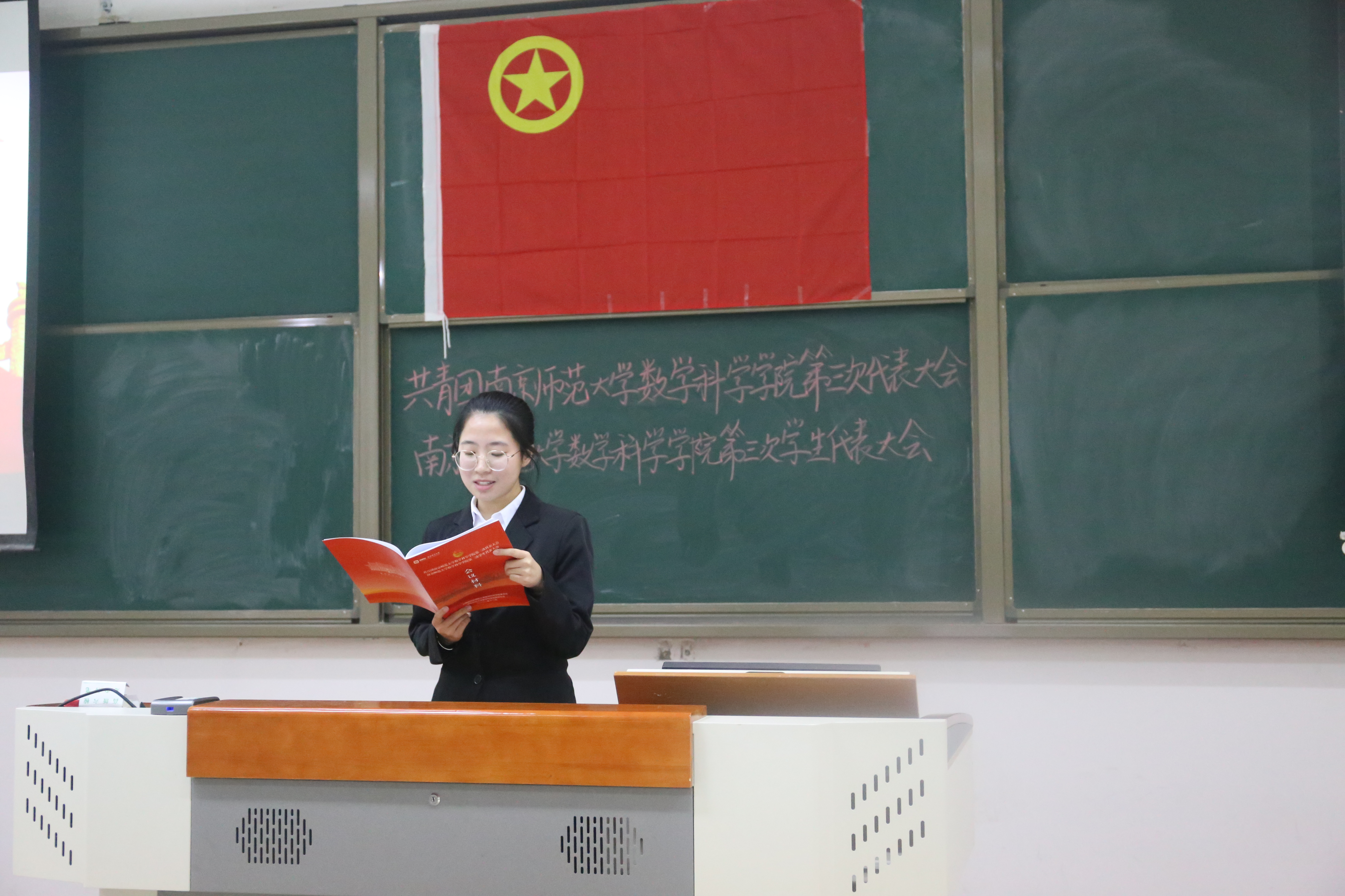 最后,孙璐瑶同学宣读本次大会倡议书,倡导全院青年朋友矢志报国、勤奋学习,努力在新时代谱写南师学子的奋斗篇章。在嘹亮的《国际歌》中,大会圆满落下帷幕,各位代表有序离场。
