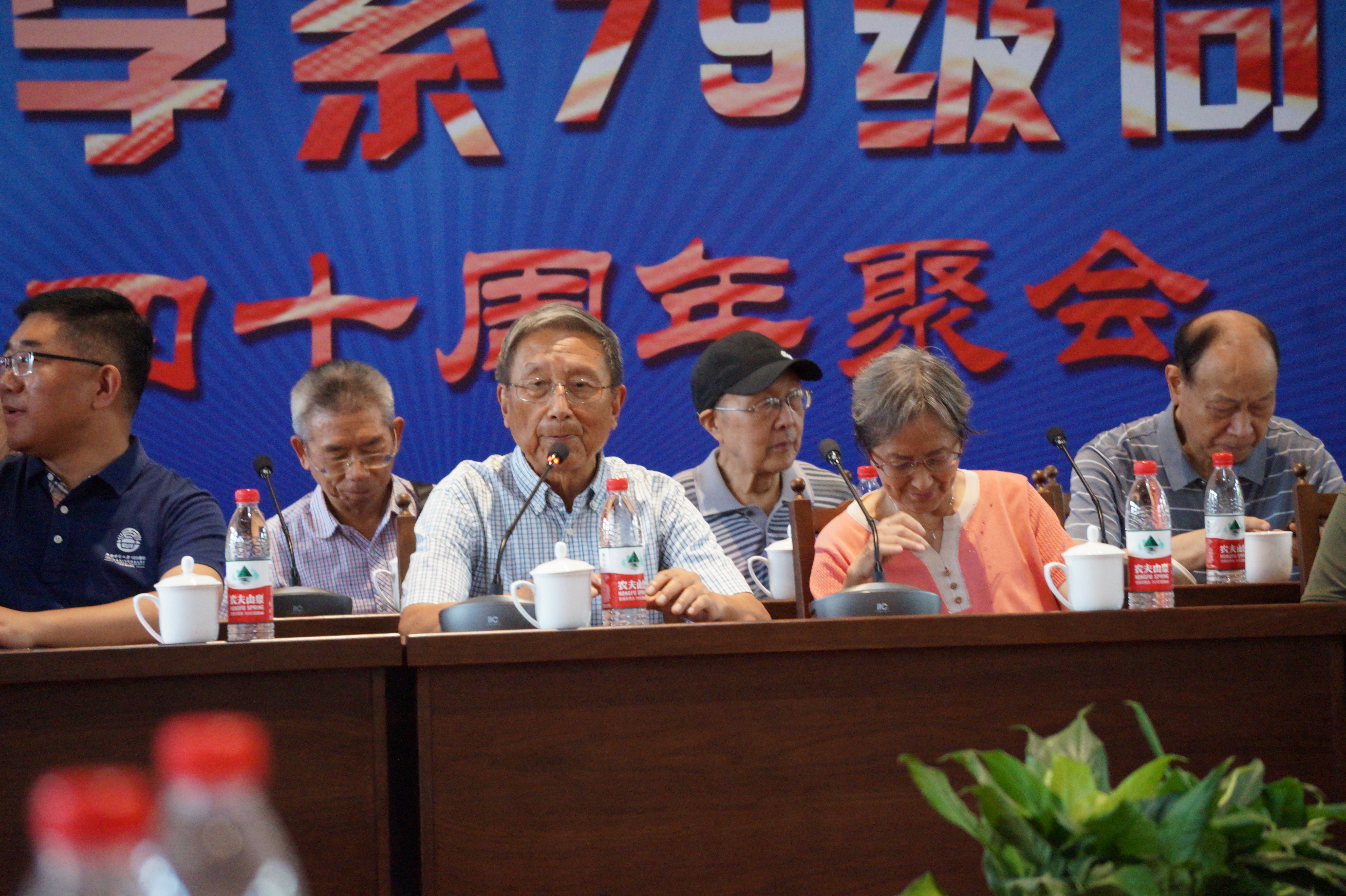 座谈期间,吕炳寿、李乐群、刘云章、李君华、周冠廷、张永康、徐晓立、徐海宁等原数学系的老教师们深情回顾了当年数学系办学发展情况和校友们在校期间学习生活的点点滴滴,向校友们表达了真挚祝愿,希望大家继续发光发热,带动后辈开拓创新、追求卓越、奋斗不止。曾担任79级辅导员的庄德铭老师也从美国发来了贺信。管义桂、谢世成等老师也应邀参加活动,并与大家合影留念。