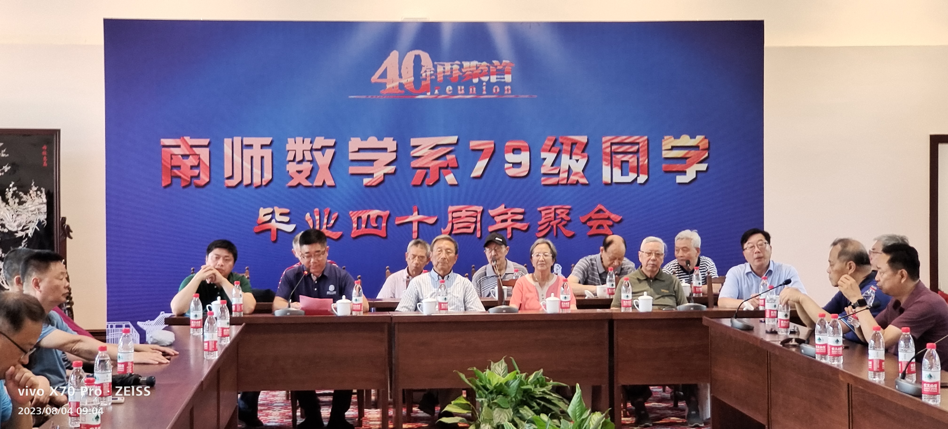 (原数学系)79级80余名校友从大江南北、祖国各地回到阔别已久的随园校区,举行纪念毕业四十周年活动,校友们回首往昔,共忆当年青春年华。学校原党委副书记吕炳寿,数学系李乐群、刘云章、李君华、徐海宁等任课老师代表,数科院部分院领导及在职教师代表应邀共同参加了毕业返校座谈会,与校友们欢聚一堂、共叙情谊、共话发展。