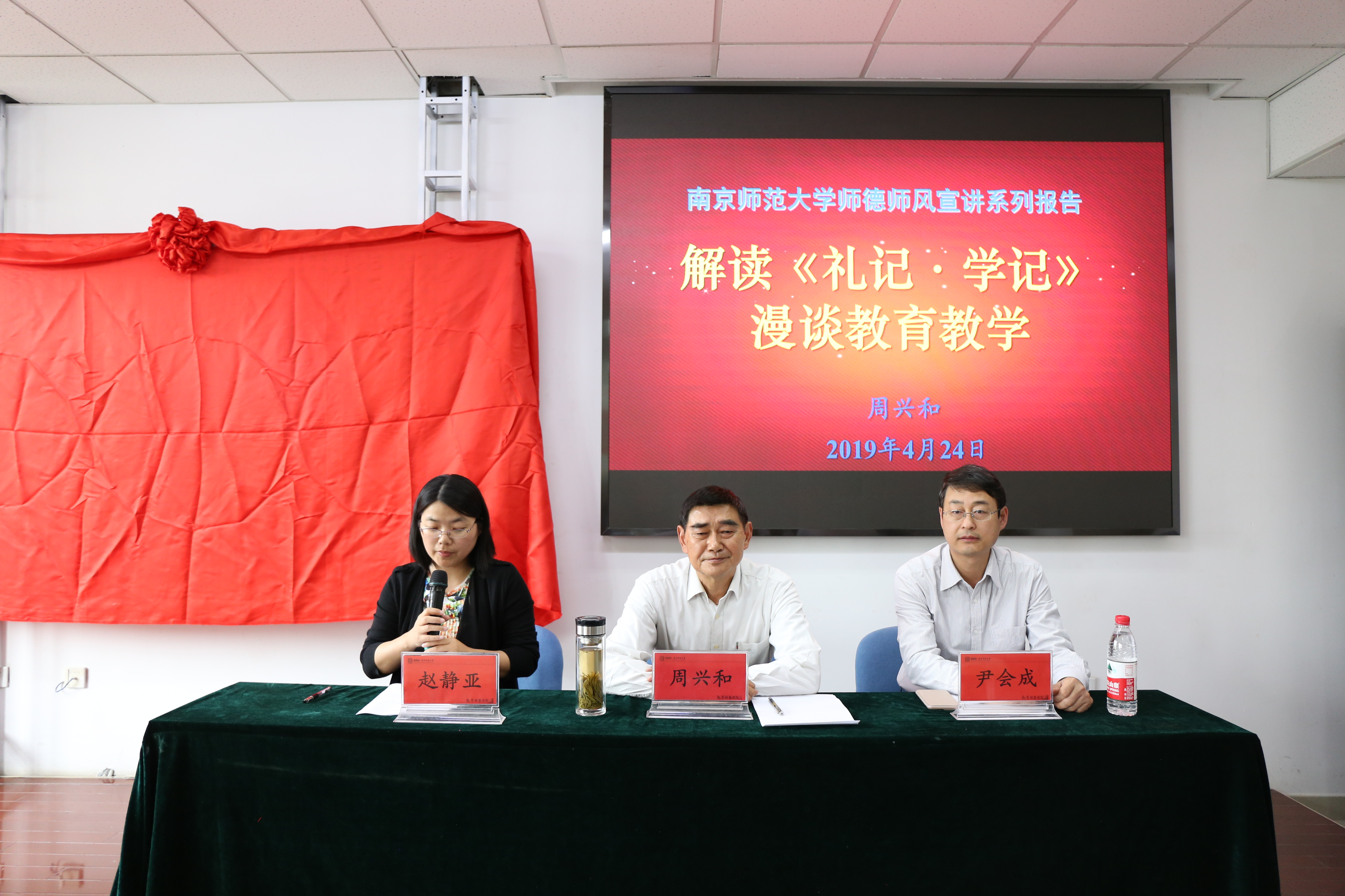 教师职业道德规范》等文件精神,切实加强师德师风宣传教育、弘扬师德典型,*女王调教-女王调教视频-女王 调教小说党委举行2019年师德师风宣讲专题报告会。2019年4月24日下午,*女王调教-女王调教视频-女王 调教小说邀请国家精品课程《高等几何》主持人、江苏省高校教学名师周兴和教授作了主题为“解读《礼记·学记》,漫谈教育教学”的专题报告。数科院全体教师到场聆听了报告,报告会由院党委书记赵静亚主持。