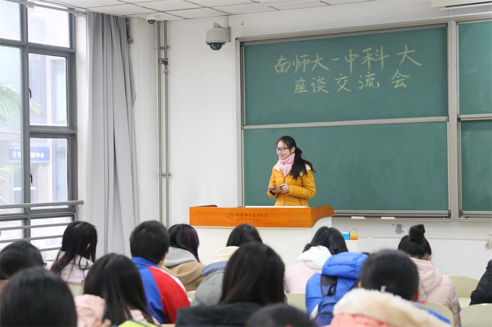 、南京大学数学系热情欢迎南师大数科院师生们,并为本次访学活动做了精心安排。7日上午,数科院2018级一批40名本科生来到安徽合肥中科大东校区,走进中科大教室与该校同学们进行了亲切的座谈和交流,并一起聆听了该校《数学分析》课程。其余一批50名本科生在南京大学仙林校区,与南大学生一起聆听该校《高等代数》课程。当日中午,中科大、南大还安排该校优秀学生与数科院访学的同学们进行共餐交流、参观校园等活动。同学们的交流话题从基础知识学习到数学发展前沿,从大学生活适应到未来发展规划,既交流大学学习心得,分享经验体会,又共同畅谈未来发展。朋辈间的交流分享,进一步加深了彼此的友谊,更明确了自身未来发展的目标。