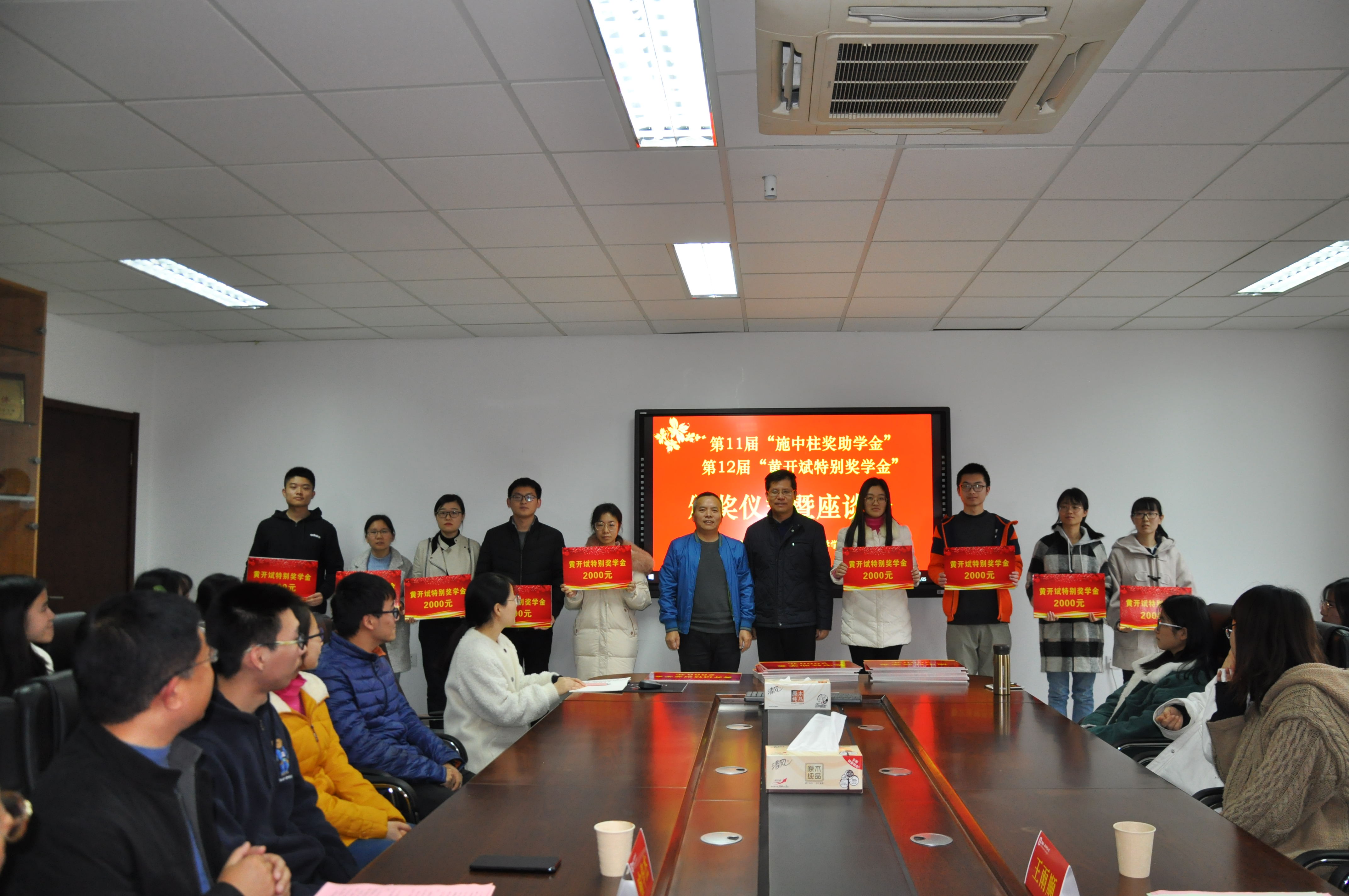 11月25日,行健楼544室内暖意融融,气氛热烈。数科院第11届“施中柱奖助学金”、第12届“黄开斌特别奖学金”颁奖仪式暨座谈会在这里隆重举行。“施中柱奖助学金”捐赠人、施中柱先生的爱人郭湘英女士,女儿施颖女士,黄开斌特别奖学金捐赠人、南京和雍文化有限公司董事长雍峥嵘先生,数科院党委书记赵静亚,副院长王雨顺等出席了本次颁奖仪式,来自来两项奖助学金获奖的本硕博代表20余名同学参加了座谈会,活动由数科院党委副书记喻华杰主持。