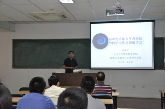"大规模复杂系统数值模拟"重点实验室专题报告在行健楼526室举行。本次报告会由北京大学汤华中教授主讲,报告的题目是“相对论流体力学方程组的数学性质与数值方法”。实验室副主任王雨顺教授主持了此次报告会。实验室成员杜其奎教授、孙文瑜教授、张志跃教授、孙越红副教授,以及计算数学专业和应用数学专业的部分学生参加了本次报告会。