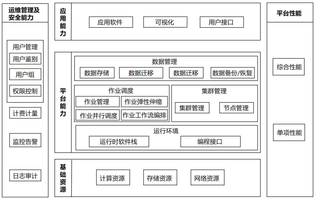 《高性能计算(HPC)云平台能力要求》行业标准规范了HPC平台应具备的服务能力,覆盖基础资源能力、平台能力、应用能力、运维管理及安全能力、平台性能五大板块。本标准对高性能计算(HPC)云平台进行分级,分为基础级、增强级和先进级。