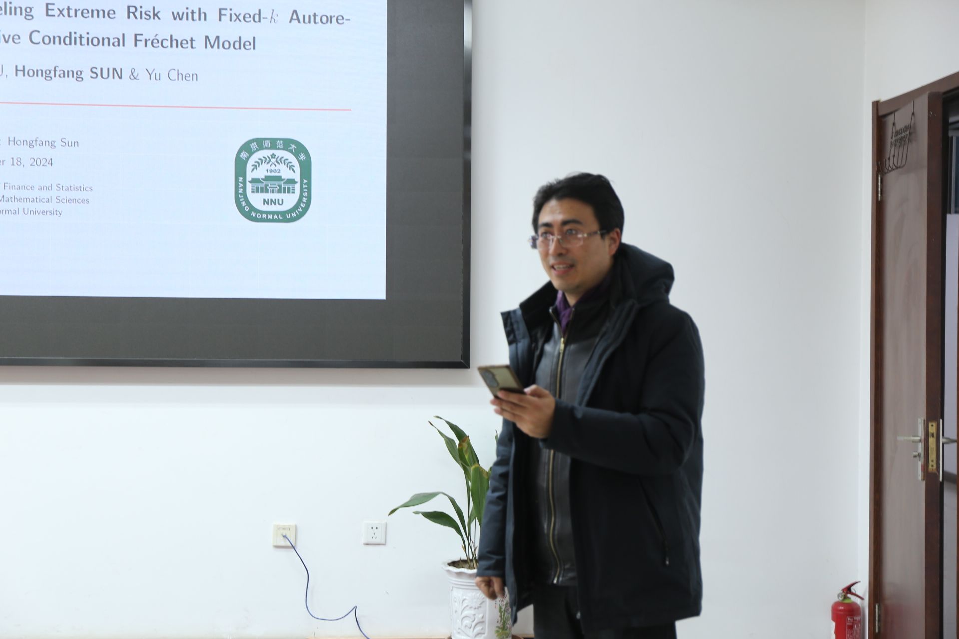 本学期第八场双周三学术报告会在行健楼学术活动室526举行。此次报告会主讲人是孙红芳博士,报告的题目是“Modeling Extreme Risk with Fixed-k Autoregressive Conditional Fréchet Model”,数学研究所副所长张晓岩教授主持了本次报告会。统计与金融研究室米辉副教授和许晓明副教授以及部分研究生参加了本次报告会。