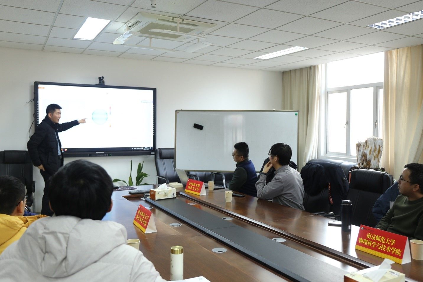 会上首先围绕太阳物理研究中的数学问题展开,国家天文台林佳本研究员介绍了对太阳观测中海量数据的解读与分析,数科院孙志斌教授和青年教师杨云汇报了各自的相关研究,参会专家纷纷发言,进行热烈而深入的交流。专家们还就教育部“一部六院”科教融汇协同育人项目的推进展开讨论,提出了宝贵的意见与建议。