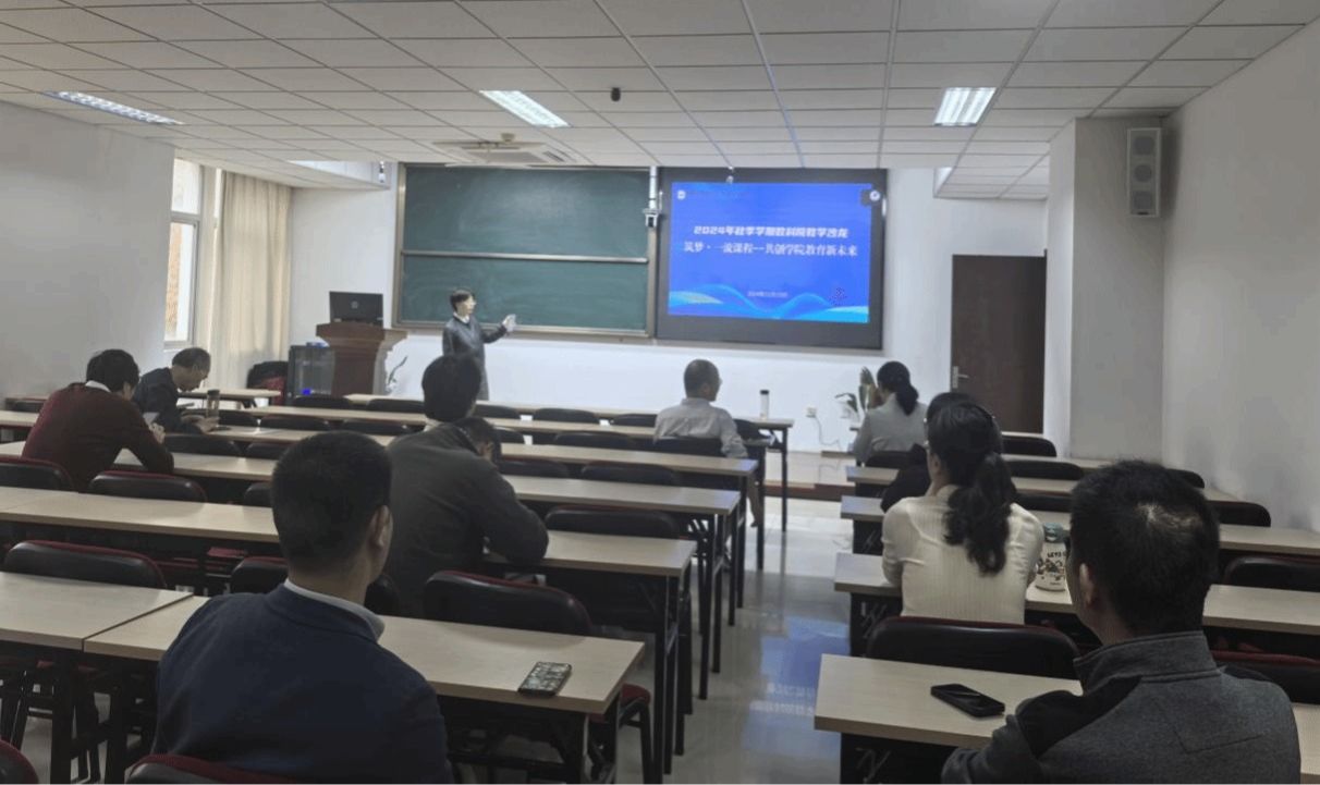 陈建龙教授介绍东南大学线性代数课程的资源建设,包括数字教材、先修课、MOOC、思政案例和应用案例;其次分享线上线下混合式教学的做法和人工智能辅助教学的一点探索;最后展示课程建设的成效和示范辐射作用。报告结束后,参会老师就报告内容进行了深入讨论。大家纷纷表示,该线性代数课程的建设经验为其他课程提供了宝贵的借鉴,值得推广和学习。此次报告不仅促进了教育教学的交流,也为推动教育教学改革注入了新的活力。