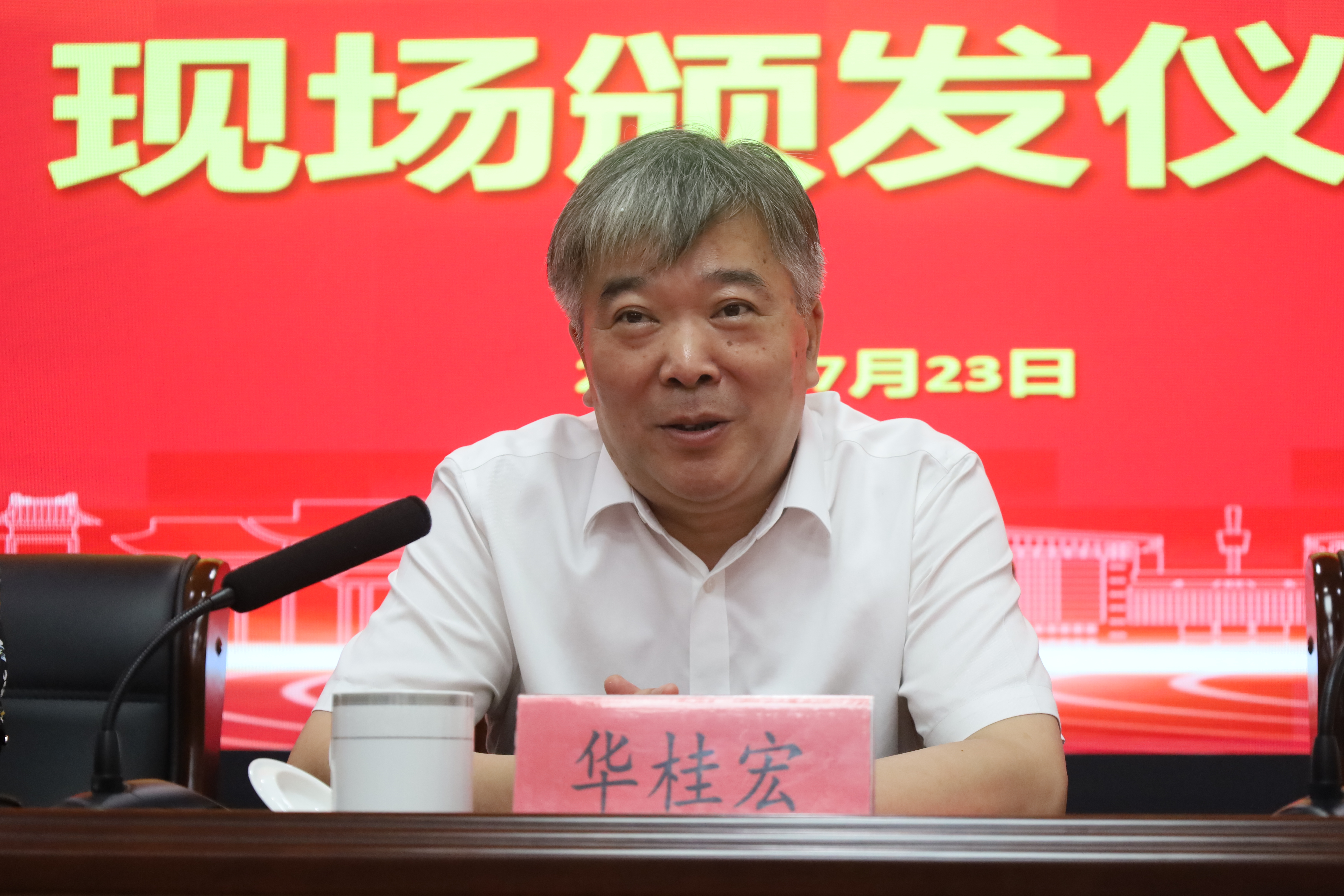 华桂宏校长一行专程来校颁发录取通知书表示衷心的感谢。致辞中,封校长与大家一起简要回顾了泰中的发展历史、办学历程及今年泰中高考取得的卓越成绩,他寄语在座同学们在即将开始的大学生活要继续弘扬“追求卓越,自强不息”的泰中精神,将来努力成为“可堪大用,能担重任”的栋梁之材,为泰中母校争光,给南师大添彩。
