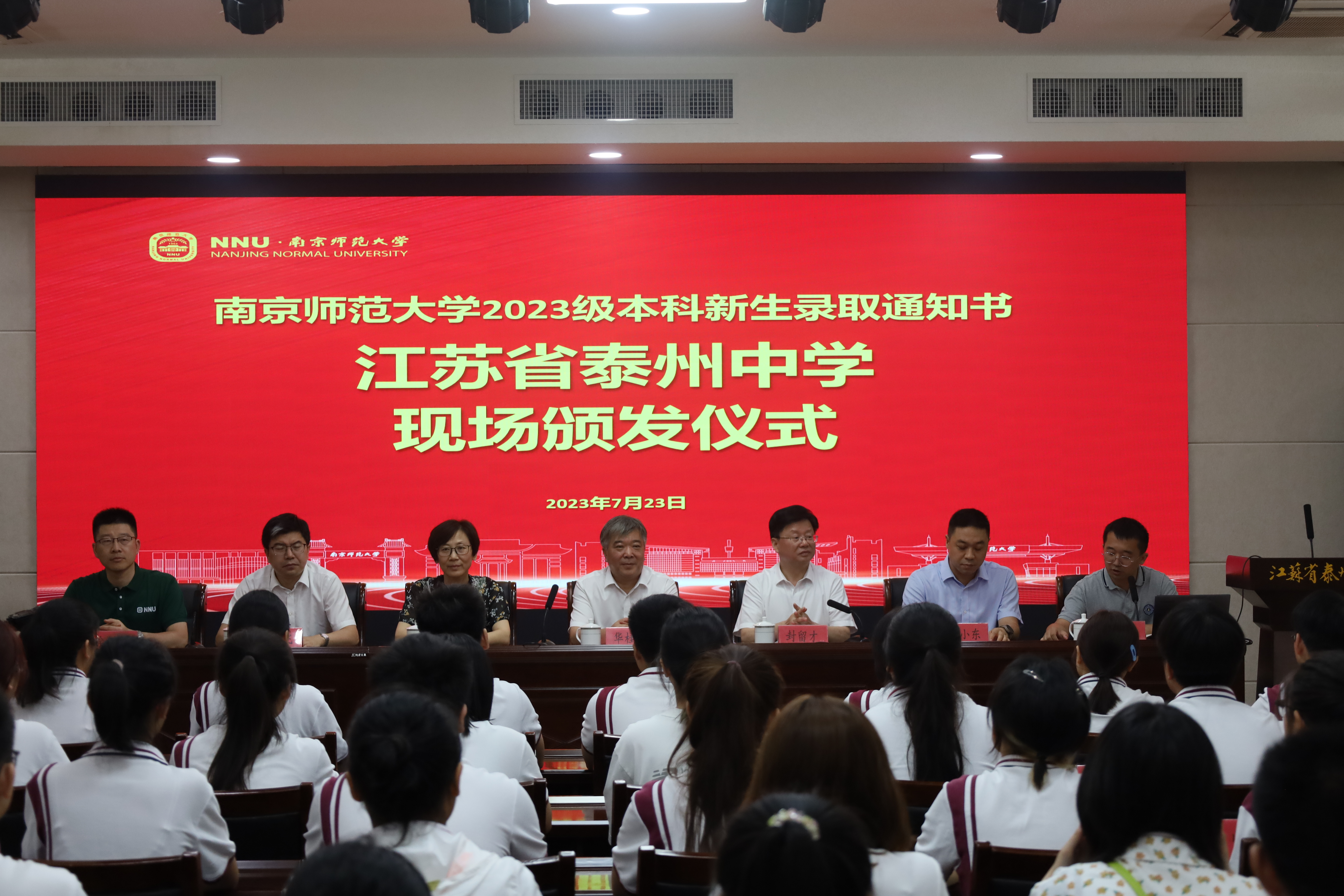 党委书记徐剑波、副书记喻华杰以及江苏省泰州中学校长封留才、副校长许志勤、见习校长周鑫森等老师、学生及家长们共同参加了录取通知书颁发仪式。仪式由江苏省泰州中学见习校长周鑫森主持。