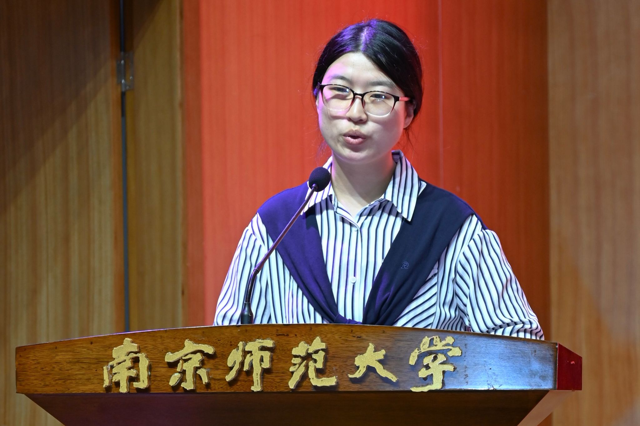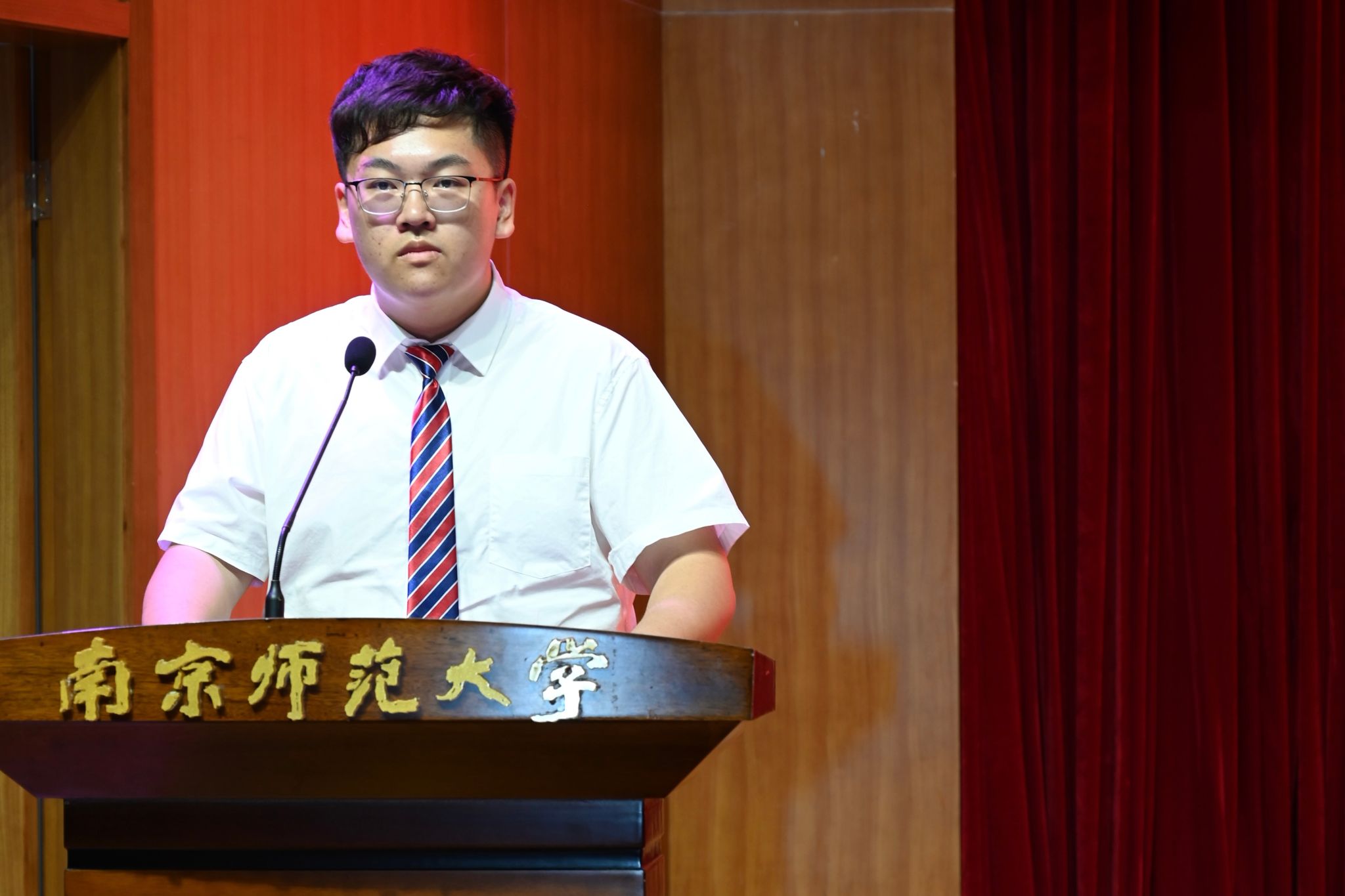 典礼上,数科院2021级计算数学专业硕士研究生孟美桦同学作为老生代表发言,她用亲身经历鼓励学弟学妹们端正心态、全力以赴,主动走出舒适圈,迎接新的挑战,强调“念念不忘,必有回响”,并号召同学们能够积极参与各类数模竞赛,不畏失败、不留遗憾。2023级数学类专业本科生周渝航同学则从自己与南师的初次结缘出发,号召同学们“百学须先立志”,培养良好的自主学习习惯,不断丰富阅历、提高综合素质。