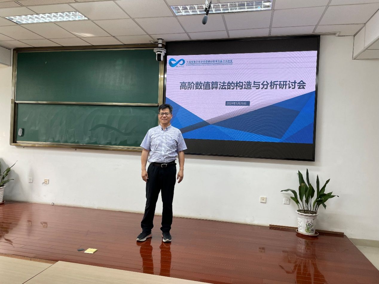 2024年5月26日上午,大规模复杂系统数值模拟教育部重点实验室在行健楼526室举办高阶数值算法的构造与分析研讨会,北卡州立大学李治林教授、香港理工大学乔中华教授、北京工业大学黄秋梅教授参加了研讨会并应邀作了学术报告。研讨会由实验室主任王雨顺教授主持,实验室成员张志跃教授、蔡文君教授、张雨泽博士等以及计算数学专业、应用数学专业的部分研究生参加了本次研讨会。