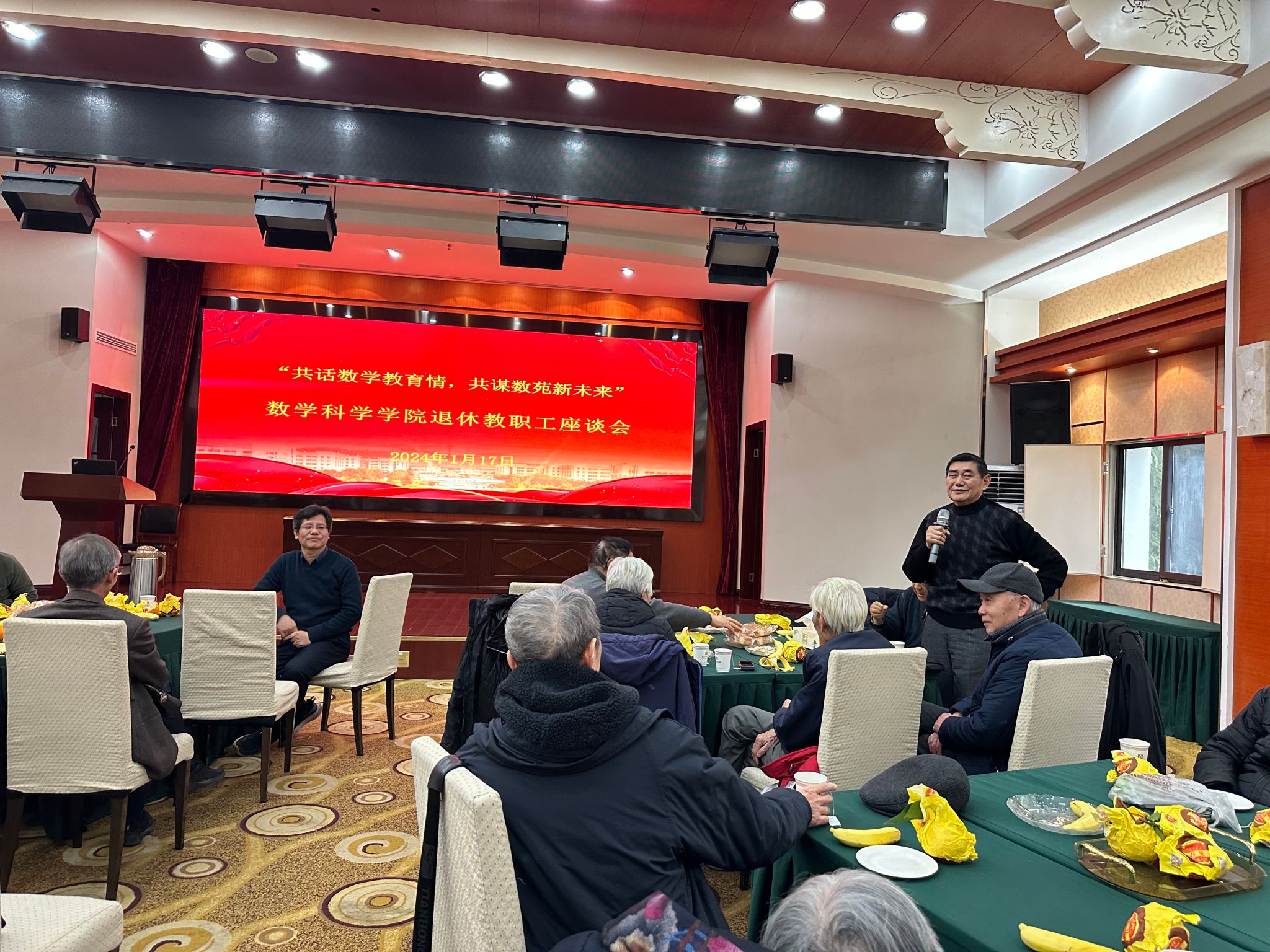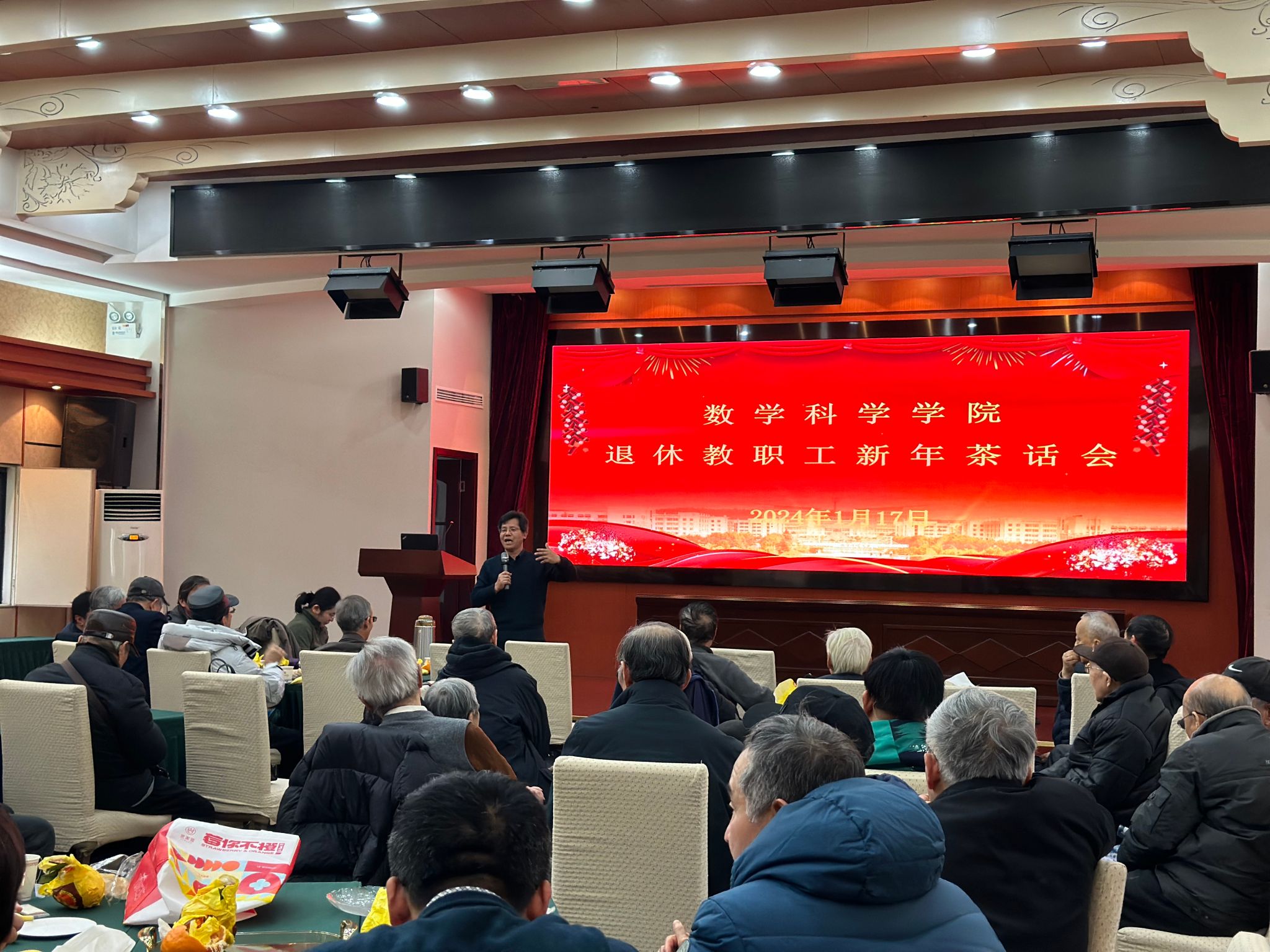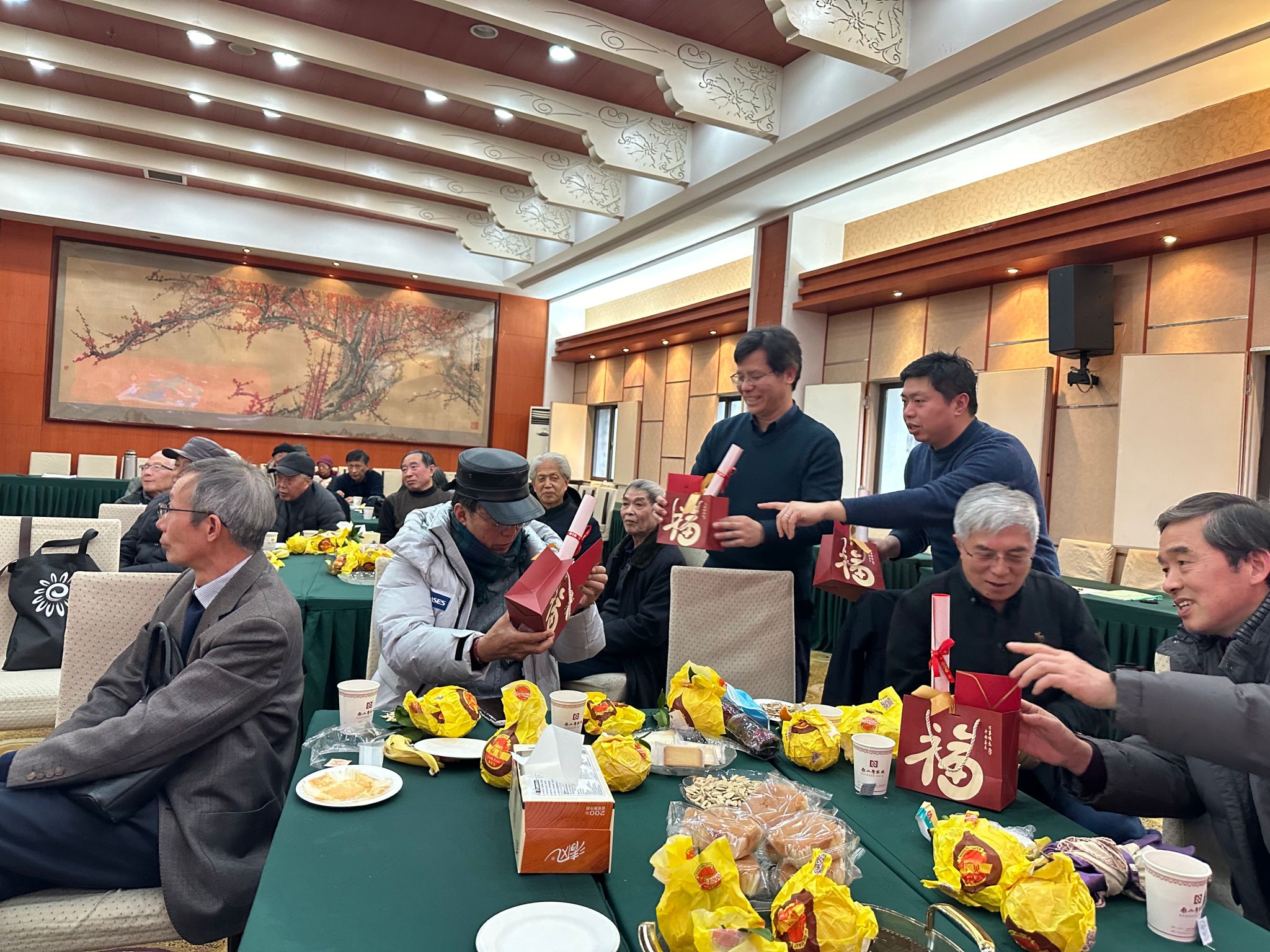 随后,王雨顺和汪艳秋为每位退休教师送上新年礼品和祝福,祝退休教师们新年快乐,身体健康。座谈会在欢快温馨的气氛中结束。
